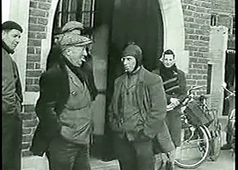 1955 : slechte tijden en een hoog werkloosheidcijfer maakten dat veel arbeiders zich iedere dag dienden te melden in het gemeentehuis om er hun stempel te halen.