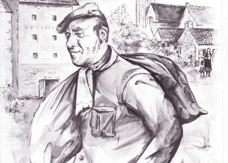 Na het afscheid van vrouw en kinderen vervoegt hij zijn kameraden en met hun baluchon op de schouders trekken ze naar de ast om er de campagne van 3 maanden zwaar labeur aan te vatten. Ze zullen cichoreiwortels drogen. Eerst gaan ze met de trein naar Tourcoing en van daar naar hun ast.