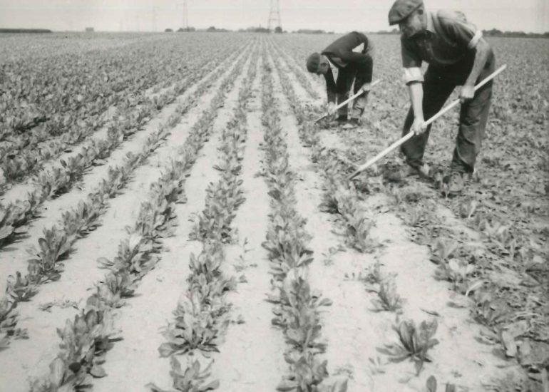 Le démariage consistait à mettre en place les chicorées avec une braquette de 10-12 cm, une route à la fois et à genoux ; « il fallait ne laisser qu’une seule plante, la plus belle ». C’était la tâche des enfants et des femmes qui profitaient du temps favorable. Mi-juillet, il fallait désherber grâce à la binette.