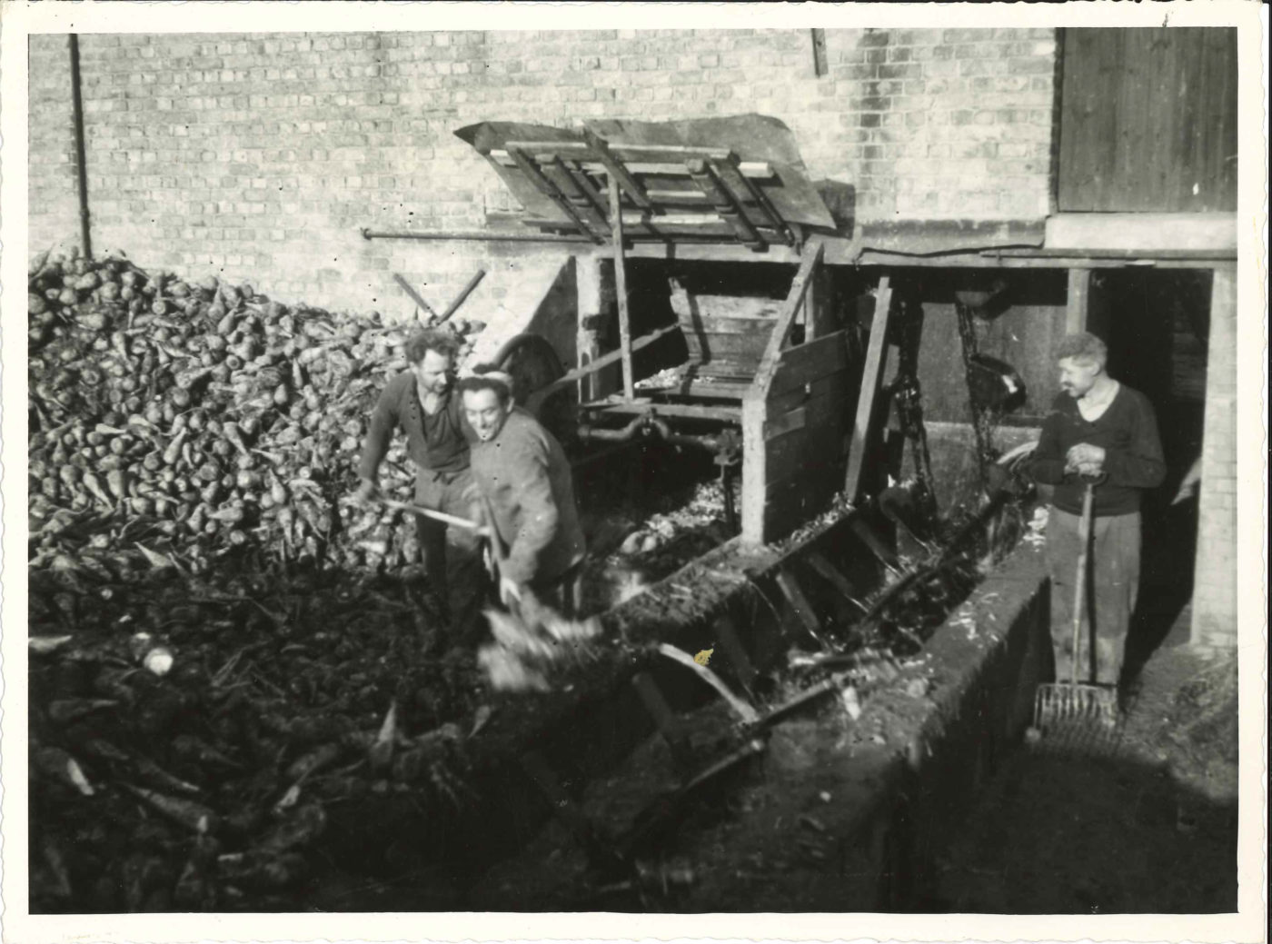 Le lavage des racines se faisait de façon mécanique dans une chaîne de lavage, succession de trois bacs, alimentés en eau provenant des watergangs voisins ou parfois d'un puits. Des pales orientées assuraient l'avancement des racines.