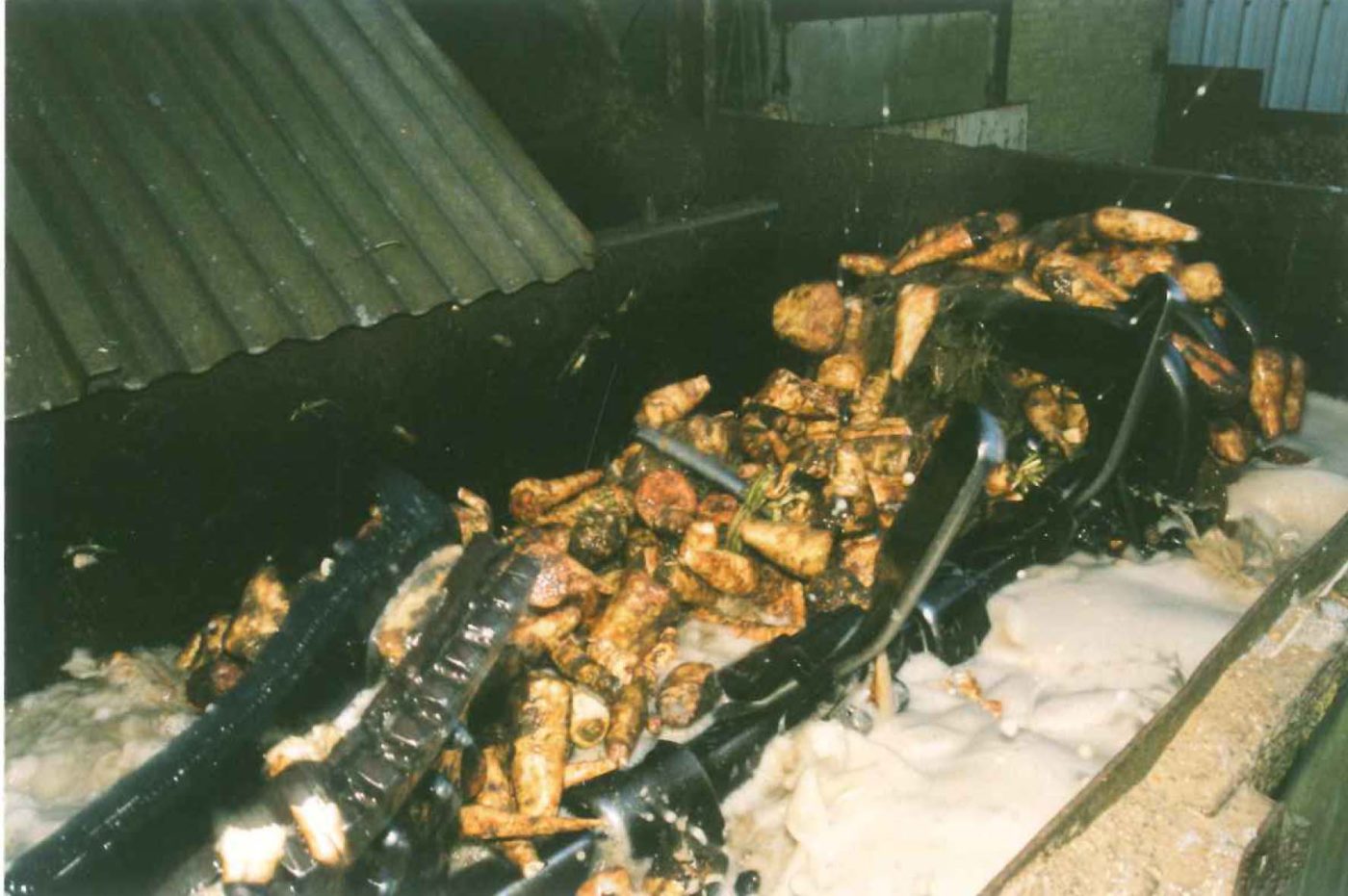 Het wassen van de wortels gebeurde mechanisch in een wasketen, opeenvolging van drie bakken, voorzien van water uit de naburige watergangen of soms uit een waterput. Gerichte bladen zorgden voor de voortgang van de wortels.