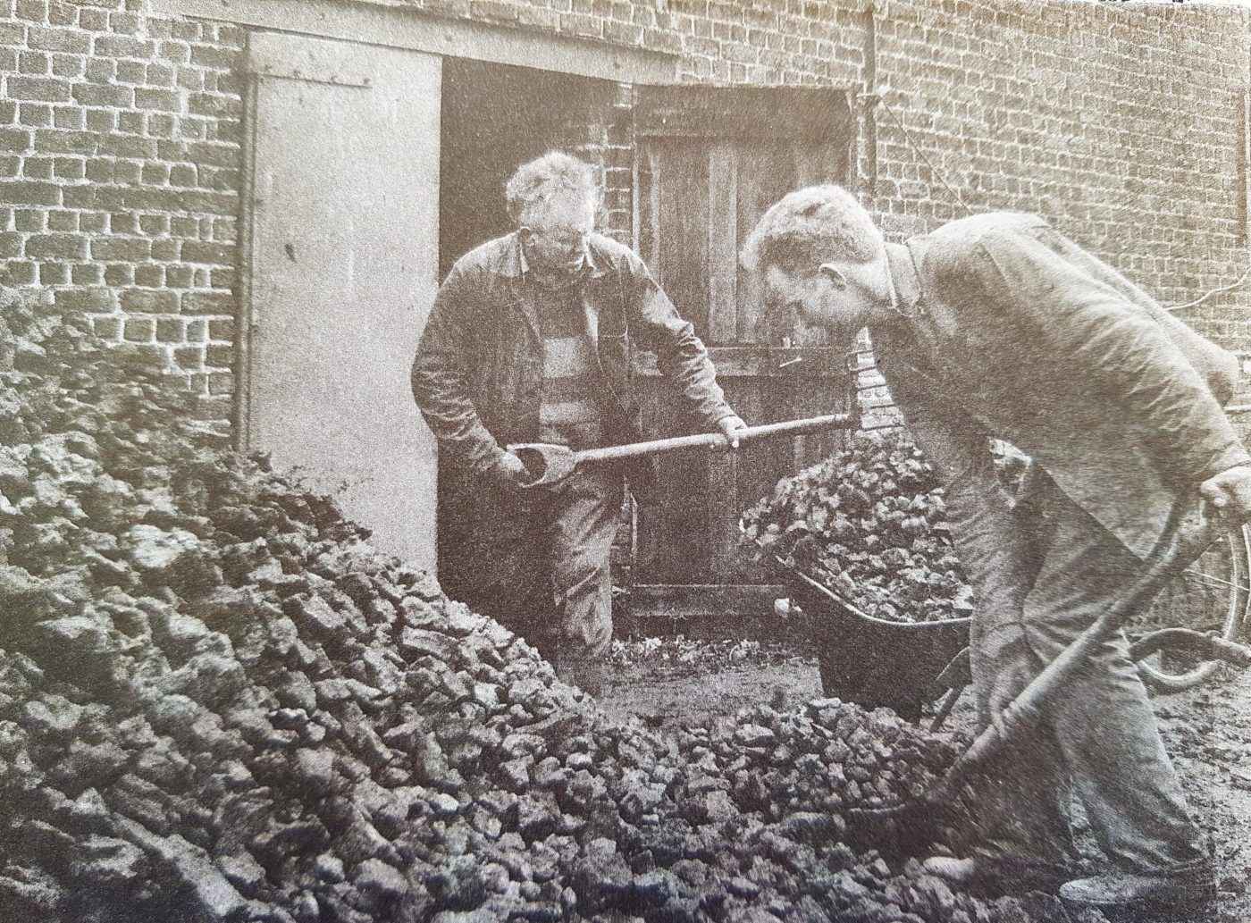 Ouvriers chargeant le coke à l'extérieur de la sécherie